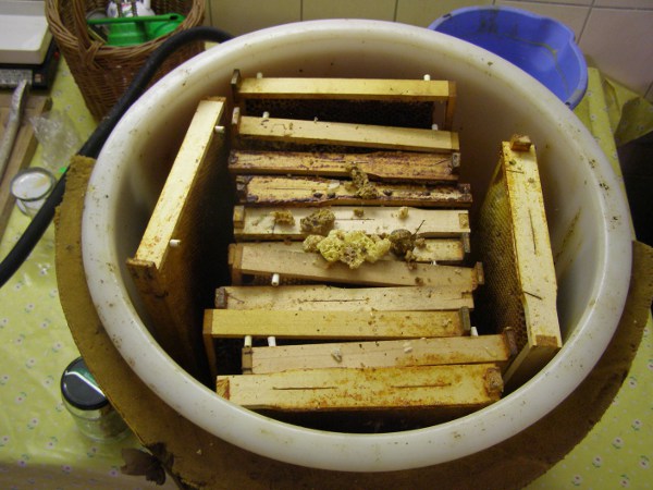 Také jsme vytavovali ze starých souší vosk. Vařák nám půjčil kamarád Olda. Šlo to dobře...zde několik fotek....